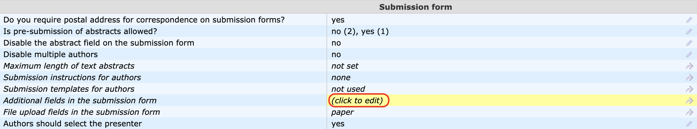 The EasyChair platform has a range of options to create and edit additional fields per the requirements of their conference. Chairs are able to add multiple choice fields, checkboxes, text fields and paragraph text fields.