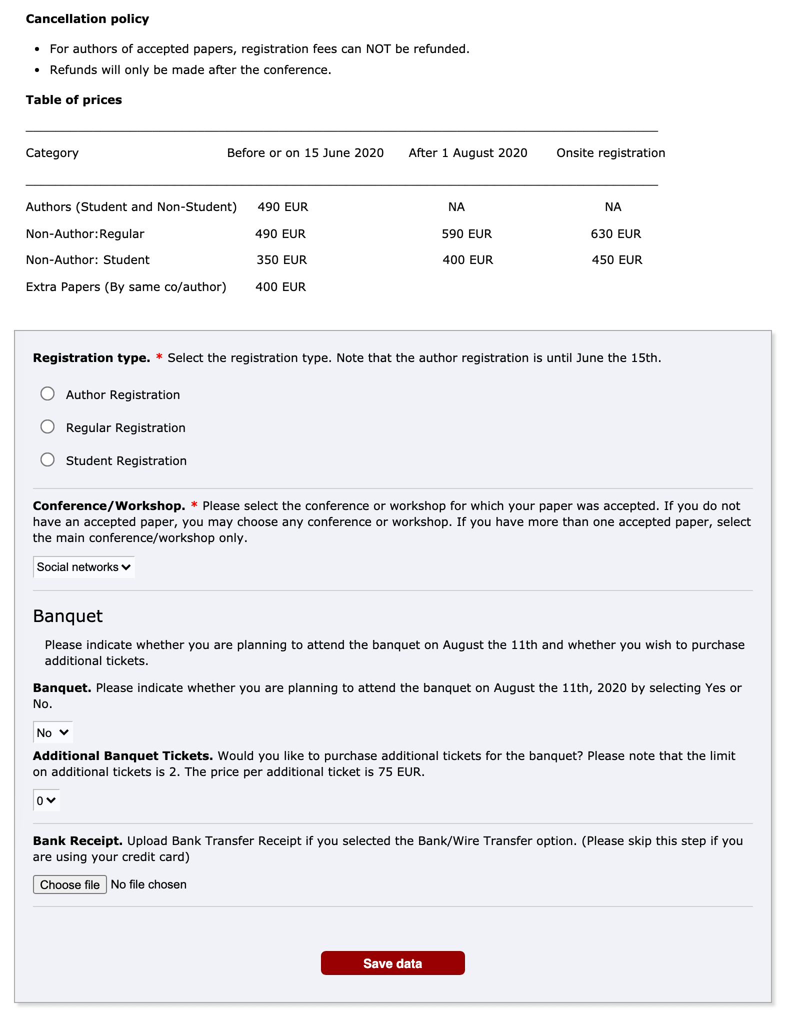 EasyChair Registration allows you to configure all aspects of your registration process and monitor it in real time.